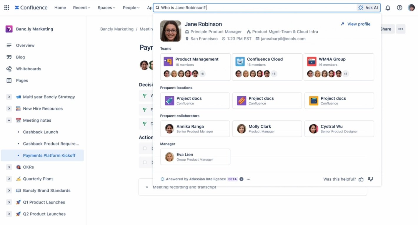 Atlassian Intelligence enables you to use natural language queries to quickly access reliable and relevant information about your organization and tasks, giving you fast access to insights across departments and projects.