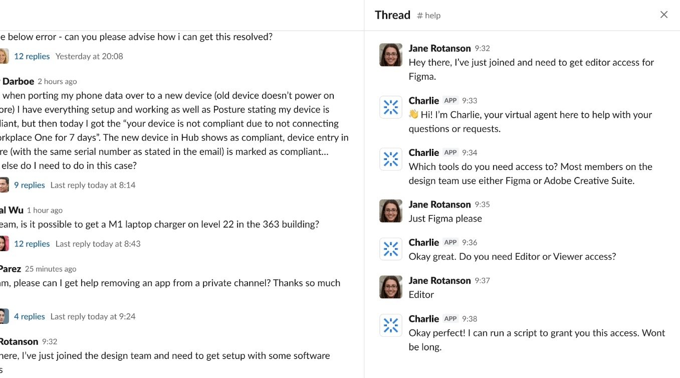 Jira Service Management virtual agents can provide internal support directly to Slack and Microsoft Teams.