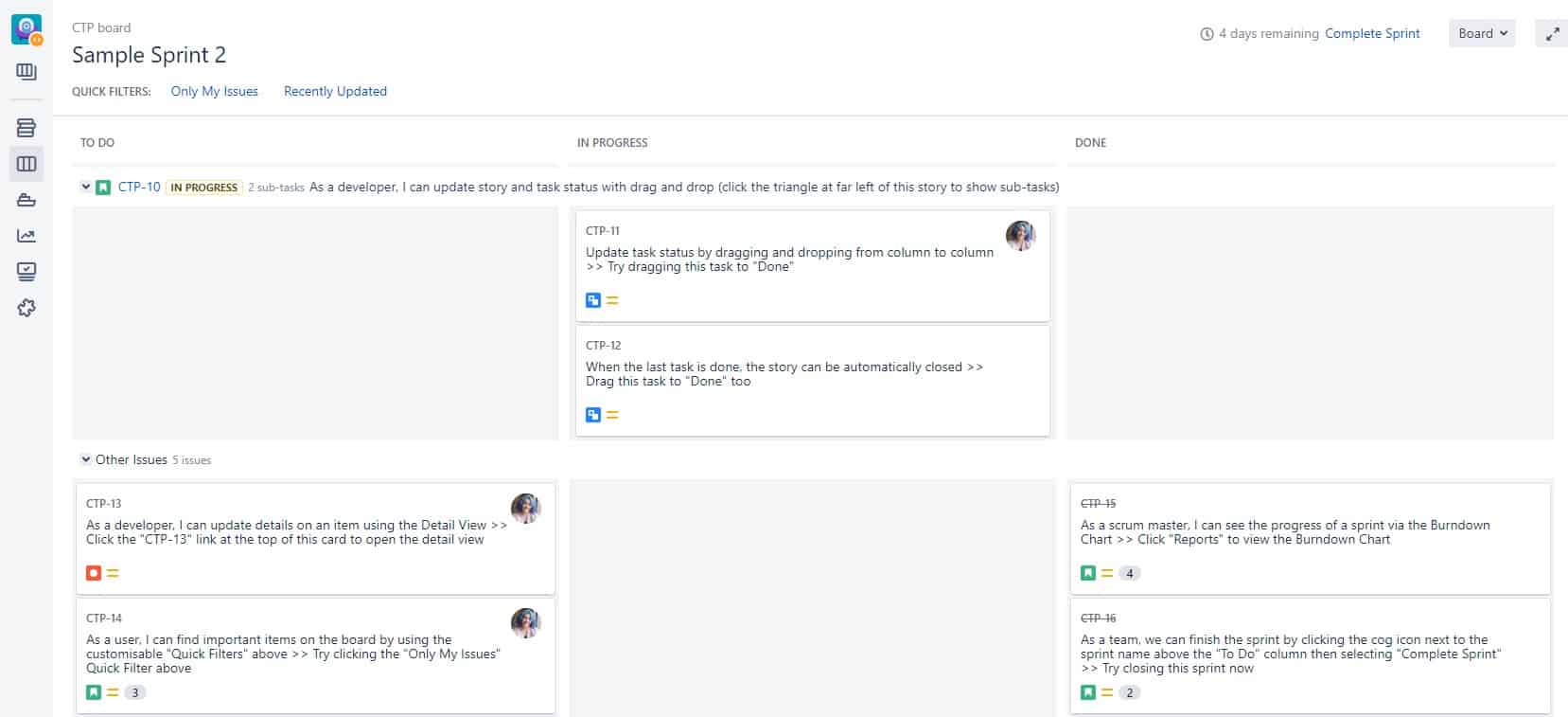Both the Scrum and Kanban view have a more modern look that provides more information on each issue.
