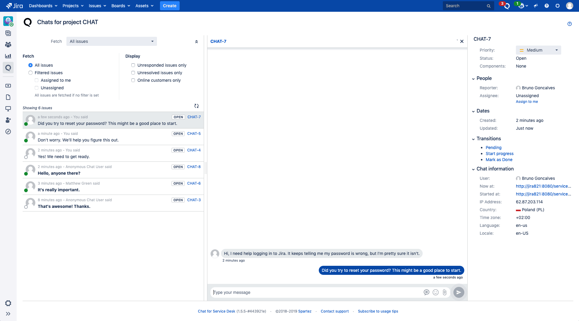 This app enables your service desk agents to chat with customers live, directly from Jira.