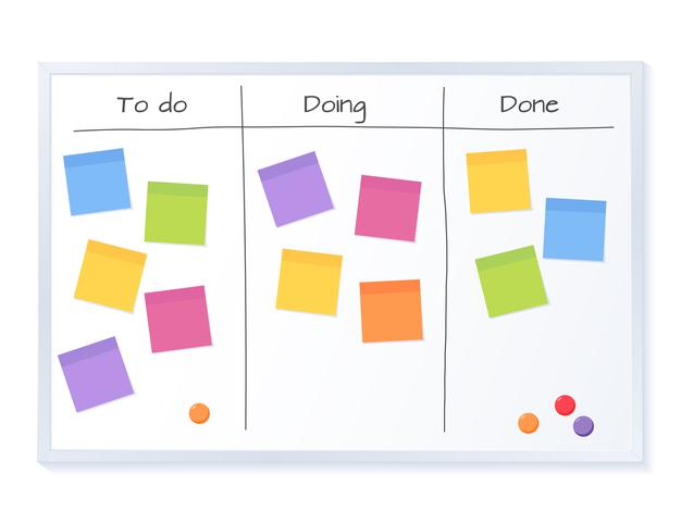 Physical Kanban boards are a perfect choice for teams that are physically co-located. They are generally blackboards or whiteboards divided into vertical columns, consisting of sticky notes which have task-related information written on them. These notes are then moved across the board based on whether the task is “In Progress” or “Done”. This helps everyone to be on the same page.