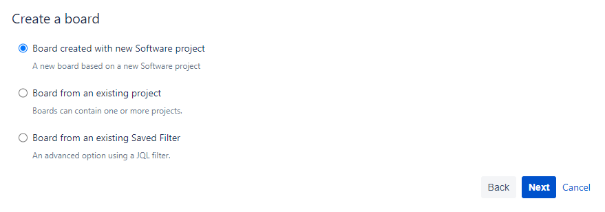 Select “Board created with the new Software project”. Once you give a name to the project, you will get to see your first Kanban board.